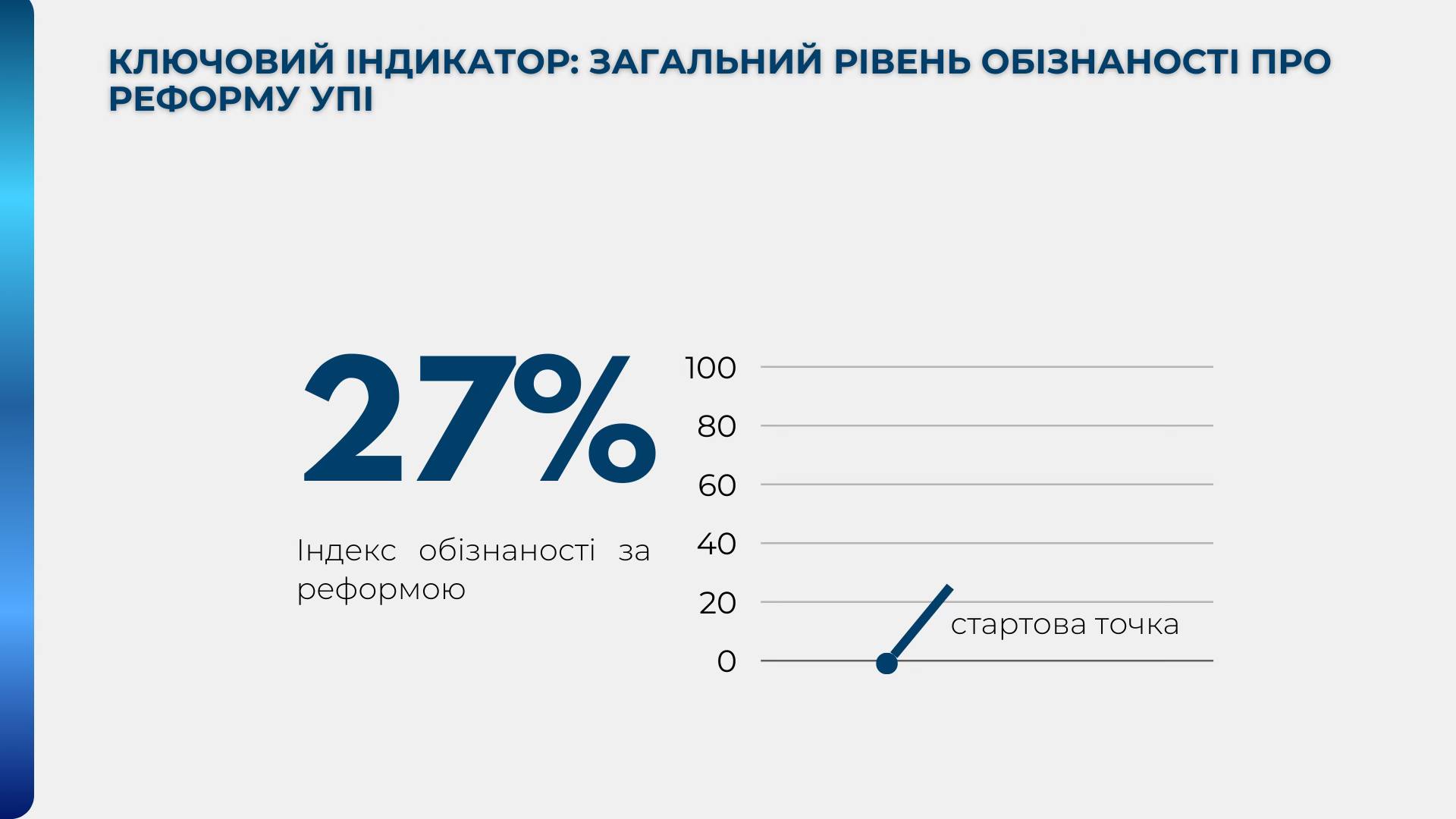 📉 Як ми раніше анонсували, індекс розуміння реформи становить лише 0,27 — показник, що демонструє поверховість знань. Люди знають про відбудову, чули про DREAM, але не можуть пояснити, як працює система.