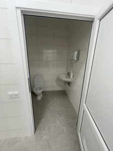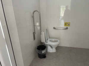 У закладі діють дві вбиральні, одна з яких адаптована під потреби маломобільних груп населення — з поручнями та кнопкою виклику персоналу.