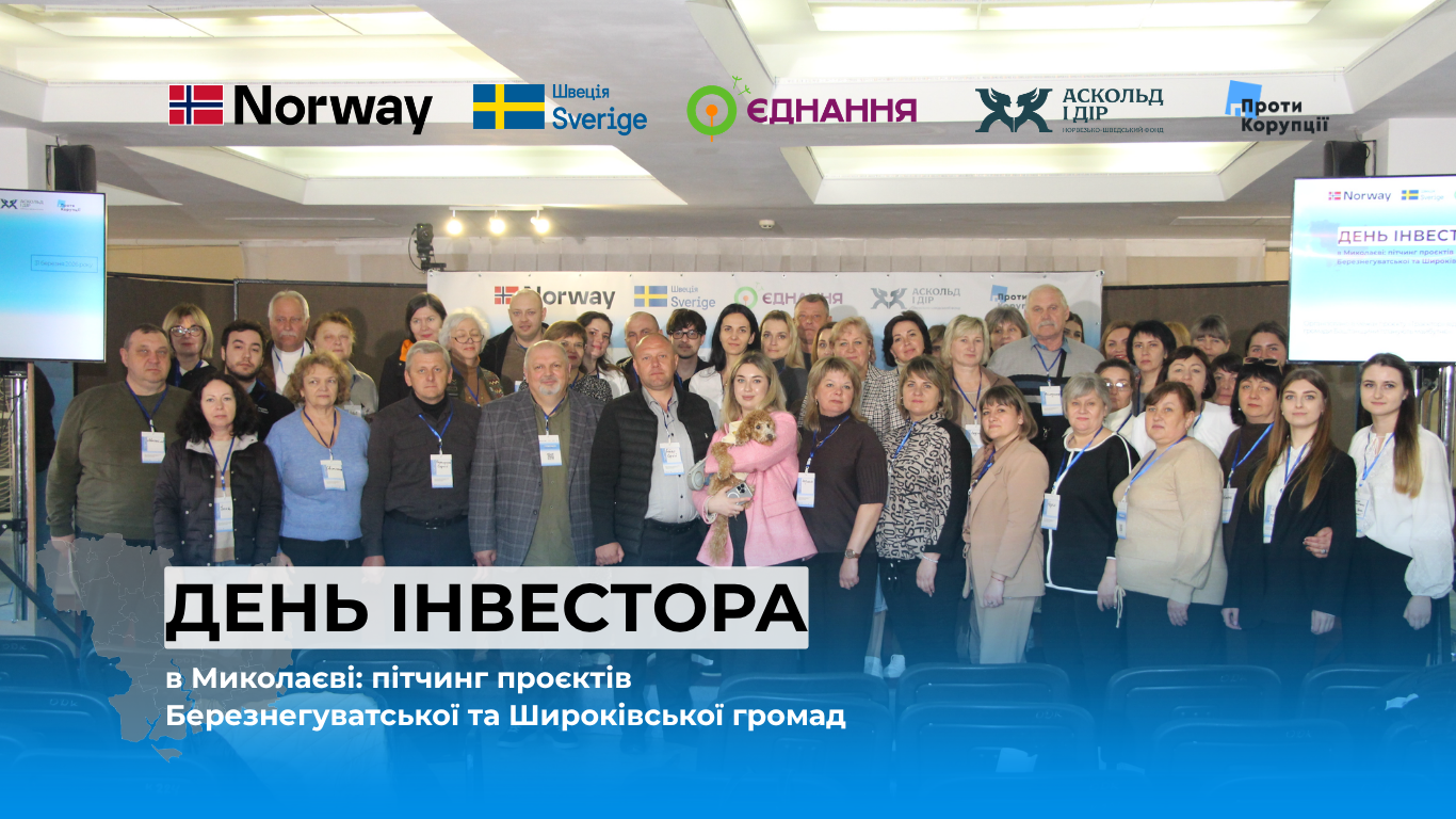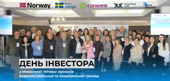 У Миколаєві 31 березня на пітчинг-форумі, присвяченому інвестиційним можливостям прифронтових територій, представники/-ці Березнегуватської та Широківської громад вперше публічно заявили про себе та плани на майбутнє з прорахованими інвестпропозиціями та концепціями урбаністичних просторів. Ця підготовка стала результатом кількамісячної роботи з експертами в межах проєкту ГО «Проти Корупції» «Траєкторії відновлення: громади Баштанщини планують майбутнє».